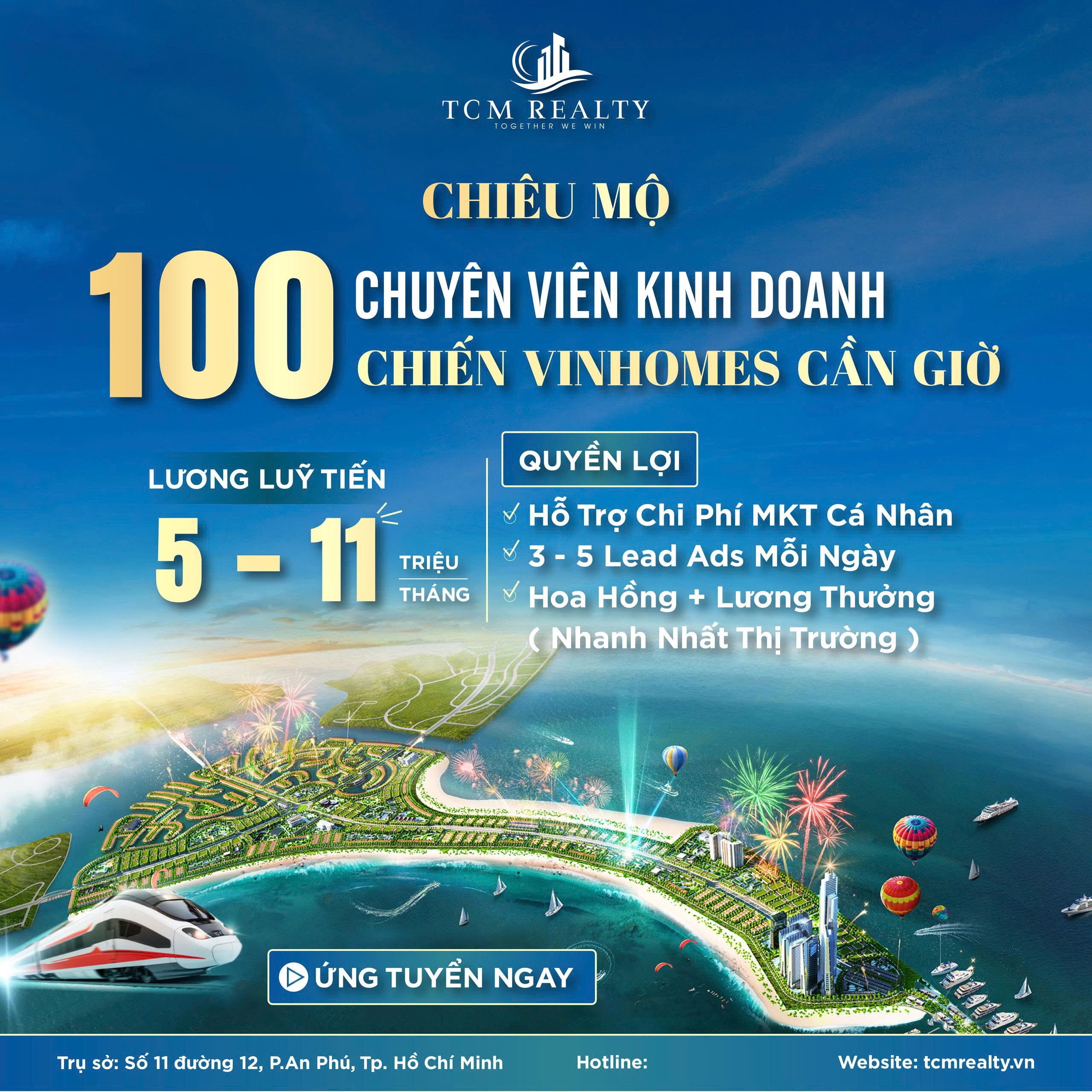 TCMRealty triển khai chương trình khen thưởng cho những nhân viên bán hàng xuất sắc hàng tháng, quý, năm. Đặc biệt, nhằm khuyến khích động lực làm việc, chúng tôi áp dụng cơ chế thưởng NÓNG  ngay sau khi hoàn tất giao dịch thành công
